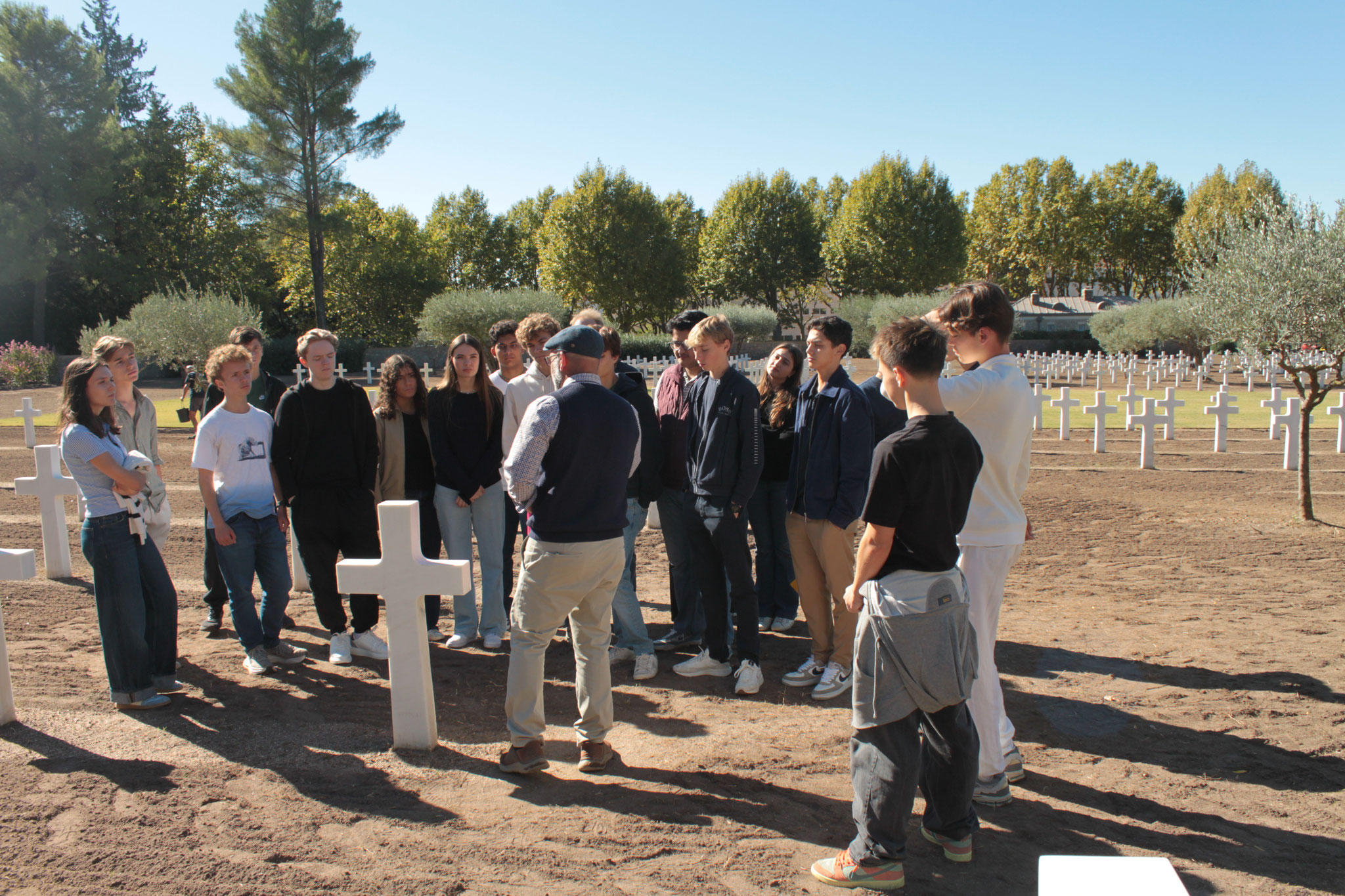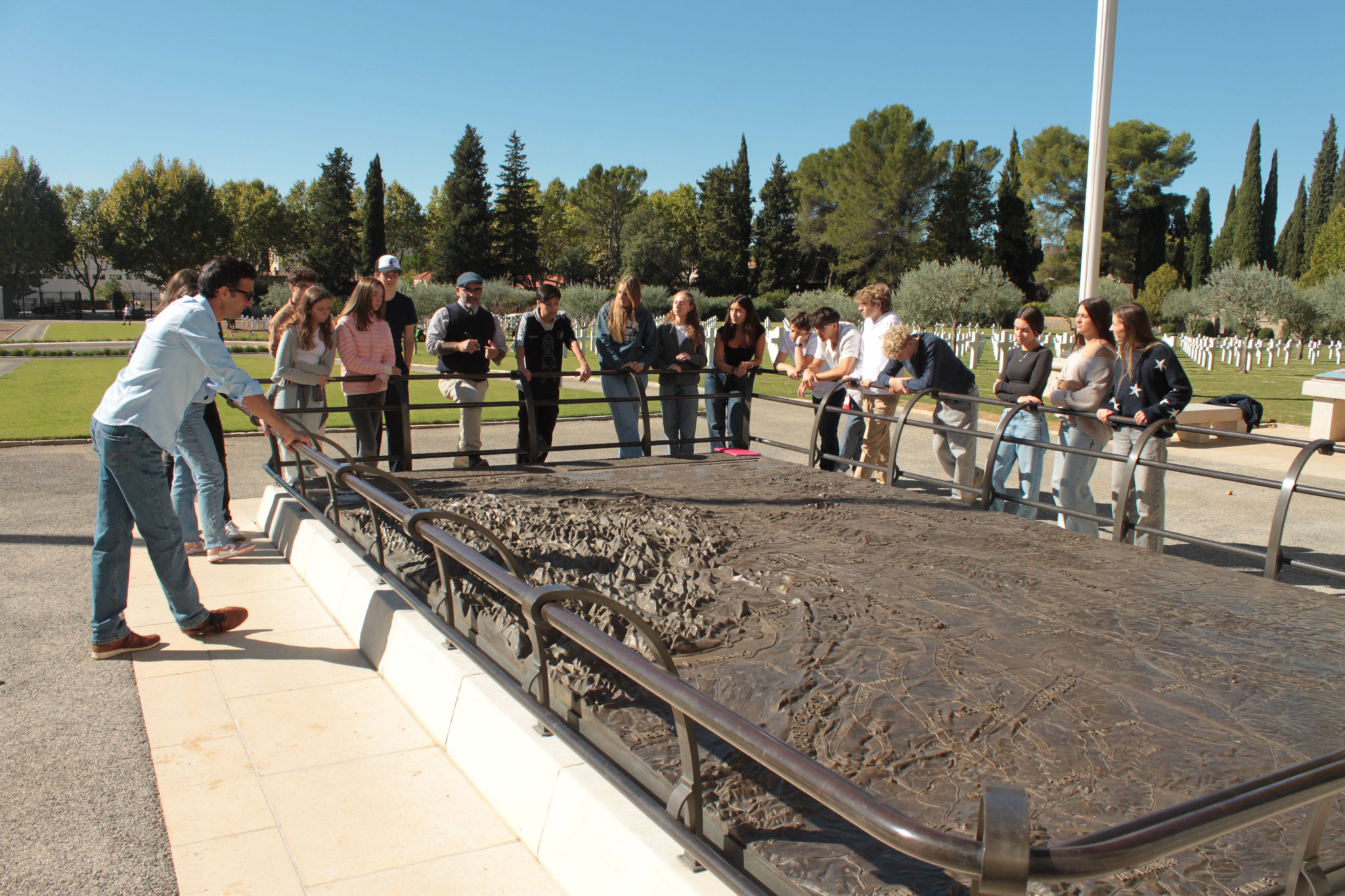 Journée pédologique mémorielle organisée par le SFA au profit de 80 lycéens monégasques accompagnés de 5 professeurs. Programme articulé entre la visite du cimetière américain, la visite du musée de l’Artillerie et de la salle d'Honneur de l'Infanterie, du mémorial de la Motte/Mitan et d'une conférence sur le débarquement en Provence au musée TDM de Fréjus.